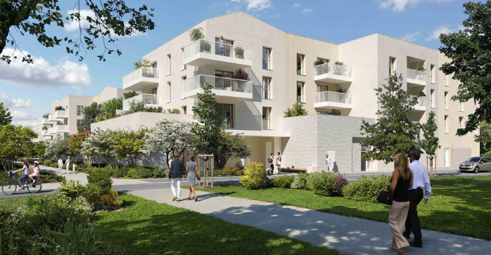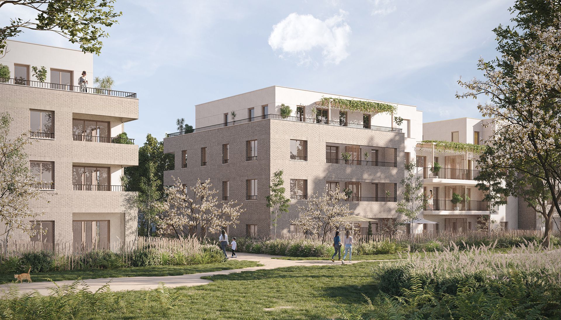 Construction d’un ensemble immobilier de 180 logements (sociaux et accession) répartis sur 2 îlots au sein de l’écoquartier de l’Eau Vive, développant 11 700 m² de SDP, avec une implantation en plots au cœur d’un paysage largement végétalisé :
